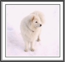 KURZER GESCHICHTLICHER ABRISS : Die Rassebezeichung « Samojede » ist von den Samojeden-Stämmen abgeleitet, die in Nordrussland und in Sibirien beheimatet waren. Die in den südlichen Teilen der genannten Regionen lebenden Stämme verwendeten weiße, schwarze und braune gefleckte Hunde zum Hüten ihrer Rentierherden; in den nördlichen Teilen waren die Hunde reinweiß und sanftmütig und wurden als Jagd- und Schlittenhunde eingesetzt. Die Hunde der Samojeden lebten in enger Beziehung zu ihren Eigentümern; sie schliefen sogar in deren Zelten und wärmten sie. Der britische Zoologe Ernest Kilbourne Scott verbrachte 3 Monate des Jahres 1889 bei den Samojeden-Stämmen. Bei seiner Rückkehr nach England brachte er einen braunen Rüdenwelpen mit Namen « Sabarka » mit. Später importierte er von der Westseite des Urals die cremefarbene Hündin « Whitey Petchora » und aus Sibirien den schneeweißen Rüden « Musti ». Diese wenigen Hunde bildeten zusammen mit den Hunden, die von anderen Forschern mitgebracht wurden, den Ursprung des Samojeden der westlichen Welt. Der erste Standard für die Rasse wurde im Jahre 1909 in England erstellt.